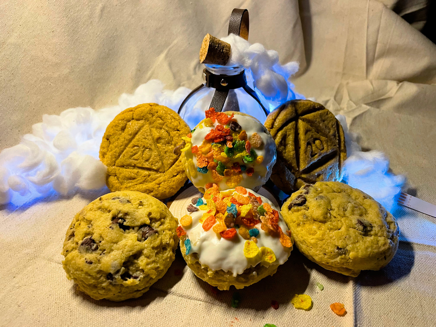 Embark on a flavorful quest with our Adventure Cookie Boxes, featuring 12, 24 or 32 freshly baked cookies inspired by legendary ingredients and perfect for sharing—or hoarding!
